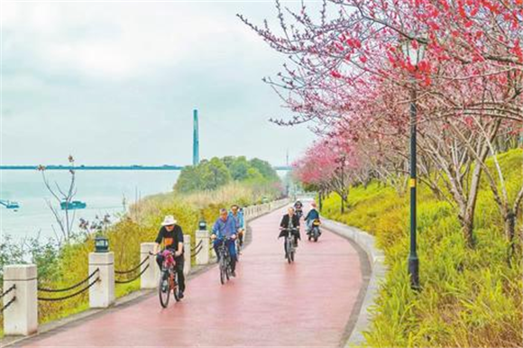 市民在鲜花盛开的email365_503-365_365bet有没有app滨江路上骑行。张应平 摄